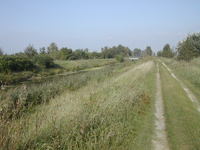 amikor én jártam arra járható volt az árapasztó déli oldala is, igazából nem láttam logikát benne miért is kellene átmennem, hiszen a műút felől a híd déli oldalán volt jelzés. kispistáztam tehát 10 métert :) A képen ha minden igaz a vasúti híd Ny felől nézve.