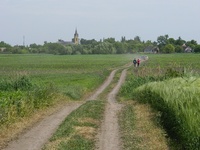 Nagyon nem lehet megpihenni a kényelmes úton, hisz a mi utunk felfelé indul, és ami a legbosszantóbb, nincs jelezve. A főút tehát lefelé, a mi utunk felfelé. Ez is széles, de jel nincs.