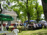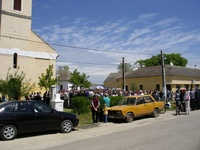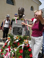 9. A szoboravató ünnepség a templomkertben volt 10. A békés megyeiek koszorúznak (Juhász Attila - BéMTSz elnök, Tirják László - KMNP igazgató) 11. Téry Ödön szobra a koszorúkkal 12. Mennyezetkép az ortodox templomban 13. Igazi majális volt a templomkertben (sör 150 Ft, jégkrém 80 Ft) 14. Visszafelé (háttérben a határőrörs) 15. A híd újra 16. Kübekháza temploma