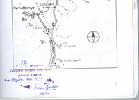 A már többek által is hivatkozott betonúton kell kerülni a Gaja túloldalára, a térképeken jelzett átkelés nem létezik. Egy-két jel is van az átkötő betonúton (előtte semmi). A vasút vége után megvan a jel, bár figyelni kell néha, mert nagyon ritkák és igen régiek a jelzések. Kicsit el is tér a nyomvonal a jelzettől. A hosszú egyenesnél már jól van jelölve az erdőben. Szép szakasz, nem jártam még korábban a Kisgyóntól északra lévő erdőrészekben. Mikor végül kilyukadunk az erdőből, ott kéne ugye a térkép szerint balra kanyarodni az erdőszélen. Ez nem lehetséges egy bekerített lovastelepi magánosítás miatt. Pont a bekerítés sarkán állunk itt, így egyenesen, a bekerítés mellett le kell jönni a dombról, jobbról szántó. A bekerítés alsó sarkán így elérjük a K 4zet jelzést, a volt kisvasút nyomvonalát. Nagyon járatlan. Magas csalán, stb. Nem tudom, miért megy itt egyáltalán jelzett turistaút, láthatóan senki se használja az utat/ösvényt... Ezen kell kimenni Kisgyón aszfaltútjáig, ott már a KDP jelzése is ismét megvan. Ellenirányból nyilvánvalóan nem lehet megtalálni a KDP bejáratát az erdőbe, mert annak a térkép szerinti helyén van a lovastelephez tartozó épület. Jobbra, délkeletre indul ugyan tőle egy út, talán azon kerülve elérhető később az északra eső útvonal.