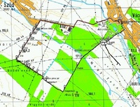 Hamarosan elértem egy jobbra induló széles utat (előttem két jármű is erre ment). Balra egy ház (a térképen 'Erdészet' felirat), jel semmi. Rövid "tanakodás" után úgy döntöttem, fordulok. Mikor az utat keresztezte a magasfeszültségű vezeték, már kezdtem örülni. Az igazi megnyugvás azonban az volt, hogy végre találtam egy jelet. Kopott, régi, de jel. Annyira megörültem, hogy Vasad széléig meg sem álltam. A Bem utcánál rájöttem, hogy bizony "túlfutottam". Kanyarodásra invitáló jelet nem találtam. Nem tudom, hol kellett volna balra fordulni.