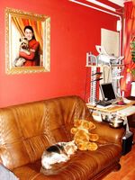 Geó most nagyon ideges mert a szomszéd nem nyit ajtót neki! :)) hangosan nyüszített majd mregunta és lefeküdt és nézi az ajtót, hogy mikor nyitja ki! Szerintem nem hallja Geó kaparását az ajtón, mert porszívózik! :))