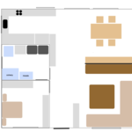 Es a konyha! Tetszik... igy ahogy van, el tudnam fogadni... ha lenne meg benne tarolohely valahol, bar mostanaban kevet sutok-fozok. A magas asztal es szekek... hat az nem kellene. Erdekes az a fal - gondolom statikai oka volt meghagyni.
