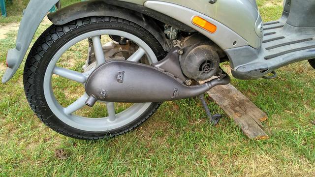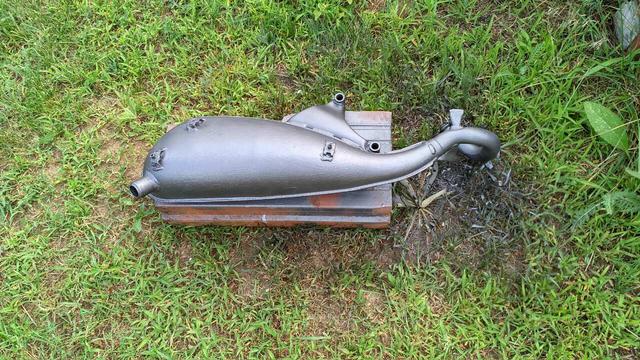 Haladok csak lassan. Kipufogó drótkefézés után kapott két réteg rozsdára kenhető hőálló ezüst színű festéket. Ennek elég cigánykróm színe van ezért ezt felül fújtam 24 óra száradás után antracit szürke hőállóval két rétegben.