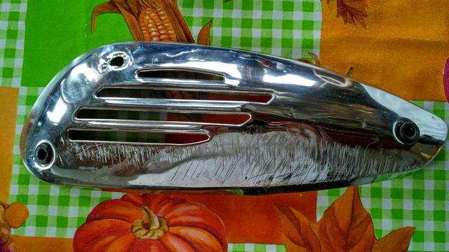Az utángyártott hővédő lemez 8000 Ft, de úgy gondoltam kipróbálok valamit. Citromsavban ázott 24 órát, a rozsdát teljesen lemarta. Apám megegyengette a lemezt. Lefújom színtelen lakkal, kíváncsi vagyok meddig bírja.