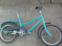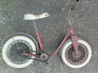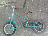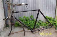 Ez lenne a a páciens.A réz darab jól látszik,a sárvédő az meg a gömbölyitett még,de ez a lánckerék volt rajta,ez kell rá???A kormány az a forrasztott,és müanyag fogantyús,az ujaknak van kiképzés rajta. Na Tatumadár segits!