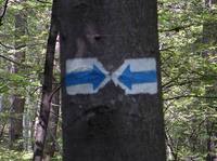 K- jelet találtunk ott, ahol indul a meredek, már csak gyalogosan járható út. Lehet, hogy régebben a nyegen keresztül ment a kék, de mióta odatelepült a drótkötélpálya, elterelték az utat.