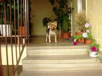 Ja Lucky annyira szemtelen és rossz mostanában, hogy kiraktuk a szobából. Eddig még velünk is aludhatott, bár az utobbi két hónapban próbáltam leszoktatni róla , de éjszaka mindig fellógott, de most már betelt a pohár és végleg kizártam a szobából. KÉpzeljétek kanos és egyik este Alexa hát mögé ált rárakta a lábáit és úgy tett mint aki dugja hátulról, tudjátok ahogy a kutyák csinálják és rendesen mozgott hozzá, azt hittem agyon verem ,hogy ilyet csinált Alexával. Na erre föl kipateroltam. Meg sajnos a sétáknál is nagyon szemtelen , nem fogad szót és minden kutya után rohan.