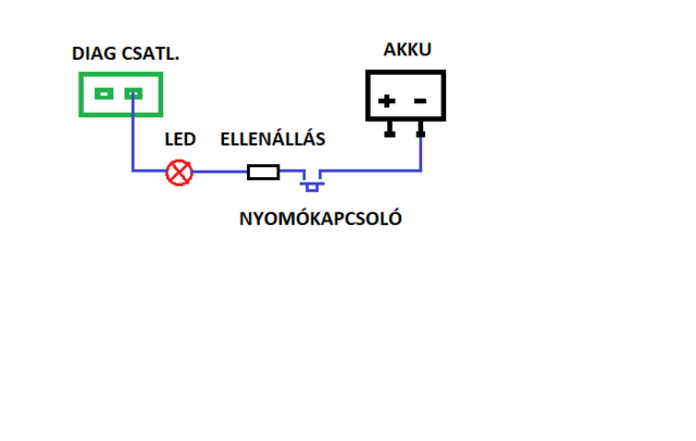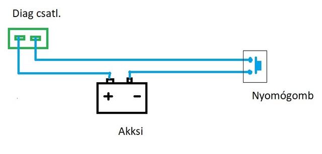 Akkor most leírom és lerajzolom ahogy én láttam, azt is leírom, hogy mit nem tudtam megjegyezni. Hiába kértem hogy árulja el a szaki hogy miként kell ezt szabályosan megcsinálni, nem nagyon volt közlékeny, hiszen akkor nem tudna kiolvasásonként pénzt kérni a műveletér. A rajz szerint összekötötte a diag csatit a LED-el és ellenállással illetve akksival. Beiktatta a nyomógombot, ami persze nem volt zárt állásban, hiszen csak addig zárja az áramkört amíg nyomva van. Ez az egész nem volt egybe építve de gondolom egybe is lehet építeni mert úgy mégis csak egyszerűbb. A szaki beült az ülésre és a segédje adott jelre 2-3 másodpercre benyomta a gombot, a szaki belül nézte a MIL lámpát. Azt nem tudtam megfigyelni hogy a segéd általi gomb nyomás előtt vagy után adta rá a gyújtást hogy lássa a MIL lámpa villanásait. Ezt többször megcsinálta. Így jött ki a 1133-as hibakód. A kérdéseim: szabályos-e így ahogy láttam ? először a nyomógomb benyomása és azután a gyújtás ráadás, vagy fordítva ? mivel négyjegyű a hibakód és csak egy MIL lámpa van ezért karakterenként kell számolni a villanásokat ? ahogy írtad van kezdet 11 és vége 12 ( vagy fordítva ) akkor összesen hatszor kell ezt eljátszani ?