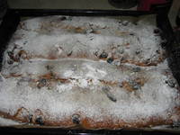 Sütöttem ma egy Drezdai Stollent, a trükk az benne, hogy csak Krácsonykor ehető, addig dugdosni kell:O)