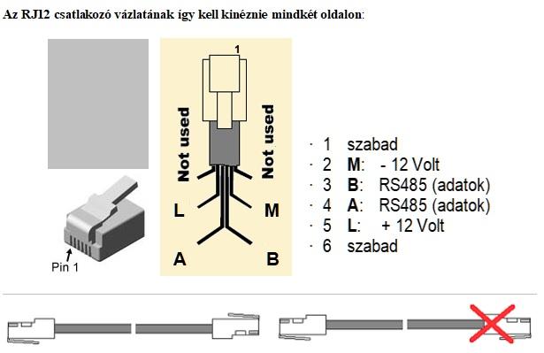 4 eres riasztó kábelt tudsz erre használni, RJ csatlakozót csak akkor tegyél mindkét végére, ha azt a LENZ adaptert is beszerzed. Ha nem, akkor a csatlakozó nélküli vezetékvégeket csavard be a wago dugóba (ha van)!