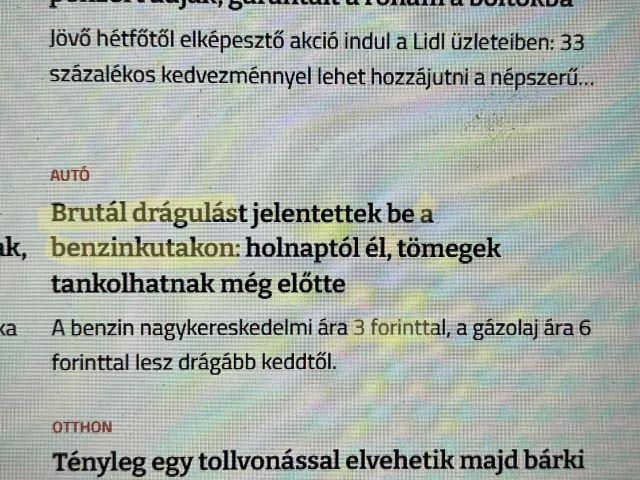 Aztán ahogy korábban itt is írta vki pl. a sógoroknál naponta emelik csökkentik x-szer az üzemanyagárakat mégsem olvashatsz róla semmit sem sehol, emelik-csökkentik oszt csókolom, a kútnál jövet menet látható az éppen aktuális ár.