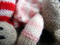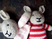 Két nyuszi formájú tojásmelegítőt, amiken kéretik megcsodálni a fantasztikus kötést... 5 VÉKONY! tűvel, csíkosan, mintásan, egyenletesen - én le vagyok nyűgözve tőlük!