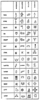 Az alábbi jeltáblázat mindhárom oszlopában legfelül szerepel a körbe zárt pont alakú jel, ami a fél világ antik írásában szerepel s többnyíire a Nap jele (pl. az egyiptomiaknál és a kínaiaknál is).