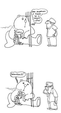 "a kedves vezető és tanácsadói úgy beszélnek és viselkednek, sőt és ez a durva igazából, úgy is adnak utasításokat, parancsokat mintha lenne az országnak egy működőképes hadserege."