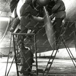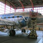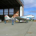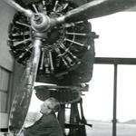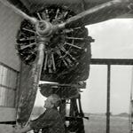 "Hangárban szerelik a szakemberek egy Liszunov Li-2-es repülőgép ezer lóerős AS-62 csillagmotorját a budaörsi repülőtéren." Érdekes, hogy nincs sárgára festve a légcsavarlapát vége.
