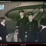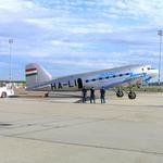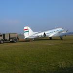 Ez a kép szerintem ugyanakkor és ugyanott készült, a HA-LBA érkezésekor. A repülőgép behajtott ajtaja ugyanis ugyanúgy áll. Az idézett filmben látható, hogy a filmfelvevőgép a lépcső jobb oldalán volt, a fotósok meg a bal oldalon. Utóbbiak valószínűleg vakuval dolgoztak. Még az is lehet, hogy nem csak egyszer jöttek le a lépcsőn, hanem annyiszor, ahányszor a rendező mondta.