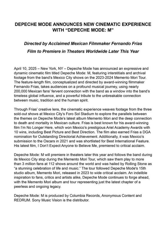 VILÁGPREMIER(!!!)... a "Depeche Mode: M” a Tribeca Fesztivál hivatalos válogatásában 2025. június 5-én debütál, majd beszélgetés következik a Depeche Mode-dal és Fernando Frias rendezővel...