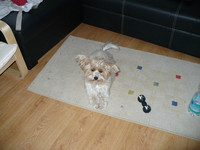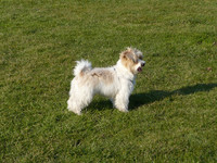 Havanese keverék, sok mindenben havanese (szőre, mérete, pofija), de a fülei nem a feje mellett lógnak, hanem inkább előre néznek, mint pl. a fox terriernek, vagy a snaucernek. Ha nem is a szüleinél, de valahol lehetett foxi a felmenői között szerintem. Első egy régebbi, azóta hosszabb lett a szőre, másodikon meg a mókás fülei láthatóak, de külön-külön is tudja mozgatni őket, attól függően mennyire figyel..: