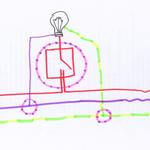 A kék, a null, keresztülmegy a lámpán, aztán bemegy a kapcsolóba.