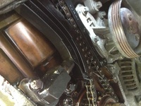 Én pont most csináltam egy általad leírt autót. Ha nagyon megvan nyúlva a lánc, konkrétan ahogy a képen látni, akkor alapjáraton nagyon csörömpöl, de egy kisebb gázadásra ez kisimul, mintha nem is lenne megnyúlva. Az önindító az én esetemben is egy kisebb erőlködés után forgatja át a motort, a vezérlés csere után úgyszintén!