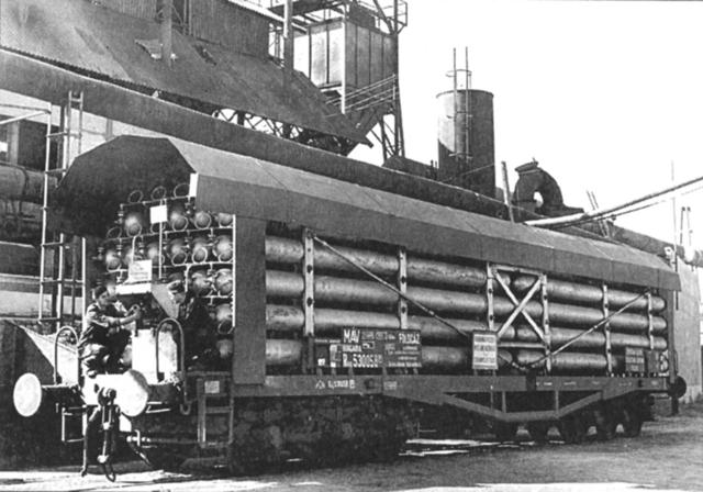 A 4 tartályosról nincs fénykép, csak rajz, lehet, hogy csak terv volt, sohasem készült el. Az 1085mm ármérőjű, 300bar nyomást kibíró tartály elég durva! 50kp/mm2-es acél szakítószilárdsággal és 4-szeres biztonsággal (ahogy a másik tartálynál volt) 130mm-es falvastagság jön ki. Az rendben van, hogy körbetekercselik, de mi van a végén, a "sapkáknál"? Az ilyen vastag anyag hegesztése sem triviális!