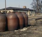 Un. kőedény volt a savszállító tartályok anyaga, tehát a folyóssá tett agyag alapanyaghoz finomra őrölt kvarcot, földpátot, mészpátot adagoltak, így jött létre a formázás és kiégetés után ez a kemény, savak támadásának is ellenálló kerámiaféle.