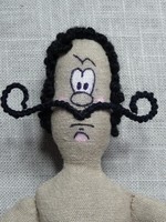 Jó reggelt Mindenki! Megpróbáltam a csipatengeren átlátni, de még nem az igazi. Azért küldöm a Pági-baba nálam létrejött fázisát. Túl nagy filozófiát nem tudok csatolni a történethez, annyi csak, hogy ez az Ahama szerint uniszex frizkó nekem egyértelműen egy olasz piperkőc (mondjuk ki homokos) pasi. Elsősorban persze a lábtartása miatt. Mert ahogy az előző képen is látszik, ha a feje nem is egyértelműen uniszex, a tartásában mindenképpen van valami kecses nőiesség. Az én olvasatomban lehetett volna akár tánctanár is. Ahama csomózásos technikája miatt sűrű, göndör a haja, ezért a bajuszkánál is igyekeztem a göndörséget megtartani. A finom rózsaszín arcpír pedig a nemi identitást emelné ki. És most épp meglepődött. Azt nagyon sajnálom, hogy a hátulját nem fotóztam, ugyanis seggevágánya is van!