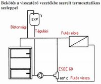 "Az hideg kazántestnél, pl. üzem kezdetén, a hőbomlás (gázképződés) megindulásakor a tüzelanyagkamrában kátrány és savas kondenzátum keletkezik. Ezért szükséges egy termosztatikus szabályzószelep beépítése, hogy a keringetett víz hőmérséklete 60°C fölött maradjon. A kazánvíz üzemi hőmérséklete 80-90° C között kell legyen."