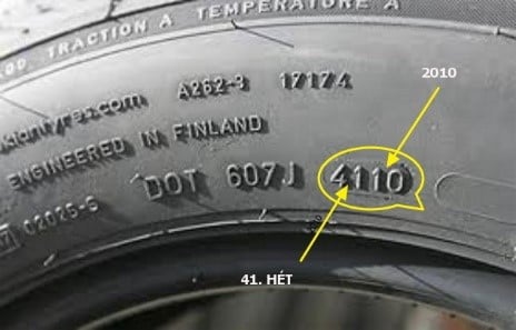 Nem kicsiszolták, hanem nincs rajta. Van mindenféle alfanumerikus kód rajta, de az nem a DOT-szám (HHÉÉ). Majd ha lesz időm + még nincs kihajítva, lefotózom.