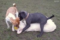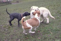 Labigazdi elengedi a kutyáját, úgyhogy sikerült összebarátkozni. Nem tudom első alkalommal mi szállta meg. Jött egy új kiskutya a a bandába, extratündéri. 3 hónapos és most akkora, mint a Cápi, mert vizslakeverék. Már nagyon várom a hétvégét, hogy újra láthassam, mert most délután dolgozok így nem sok kutyapajtással találkoztunk egész héten.