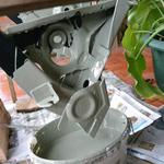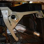 Amikor az esztergált agyat préseltem bele a csiga öntvényébe, akkor játszott a kályha. Be volt gyújtva jóval korábban, és szépen felmelegítette az alut. Persze az egész nem egy nagy szám, nem is bízok a szoros illesztés tökéletességében, ezért lett a csiga anyagában átfúrva a nyírócsap helye. Még éppen jól elforog a kipufogónyílás mögött így. Bár csak vésztartaléknak jó, de nem akarom, hogy leforogjon a csiga az agyról, amikor úgyis szarban van az ember, ha már ehhez kell nyúlnia...