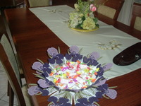 Az asztalterítő is mostani alkotás?A közepén a virágcsokor,feltűnt,talán azt is Te alkottad???Jól látom,hogy organzából van,vagy ennyire rossz a szemem?