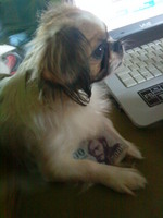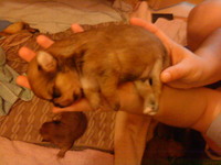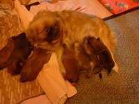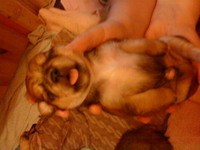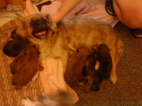 ez Angi, a keresztlányom vigyázott rá,mert a másik kutyám Zsófi szülés után 2 napig nem tűrte meg otthon.Most már őt is próbálják szopizni a picik,helyreállt a béke!