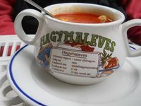 Betyárleves, maradék lipóti. Jó volt, megérte a 215 Ft-ot. :)