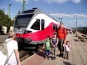 Aztán Tamásék hazavittek -ismételten köszönet érte!- 3-ra, kelés 5-kor, irány Romhány, a búcsúba készülő nagymama kocsiba be, aztán Szob, kocsi le. Magyarok nagyasszonya zarándoklat, 8 km, ha még nem untuk volna meg éjjel a Szob-Nosztra Mária út-szakaszt. De nem untuk meg, és persze ez egész más hangulat volt. 100 feletti létszám (vagy talán 150 is...), a búcsúba kb. ezer embert vártak, tényleg sokan voltak. A mise után szolgáltatás is volt: házi fasírt, ubi, helyi sütik, majd kisvasutaztunk vissza Szobra, útközben a Mária-kútnál megálló, vízvétellel. Mivel a vasárnapi gyaloglat is benne volt a TTT-naptárban, így a mama elmondhatja, hogy 70 felett kezdett teljesítménytúrázni :-)