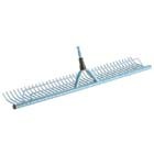 Egy méteres hosszú deszkát, két ferde merevítő segedelmével egy hosszú rúd végére felszegelsz, és annak a deszkának az élével masírozol keresztbe-kasul a területen, és az rögtön elkezdi gyalulni a felületet, ahol egy kis dudor van.