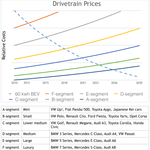 Ez egy eleg sürü abra. Arrol szol, hogy melyik kategoria hajtaslanca mennyibe kerül a gyartonak. Csaxolok, hogy a szaggatott vonal jelkepezi az EV drivetrain költsegenek az alakulasat ...