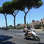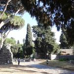 Vasárnap a Piramidéhoz buszozunk, az állomás előtti büfében megreggelizünk, majd metrózunk egy megállót a Circo Massimo-ig, a Viale Aventino megállójában várjuk a 118-as buszt, innen egy megálló csak a Terme di Caracalla, de valami oknál fogva nem arra megy a Palatino bejáratánál szállunk le, innen kell visszagyalogolnunk. A fürdő romjai, falai lenyűgöznek bennünket, nem sok látogató van rajtunk kívül. Értelmezzük a térképeket, elolvassuk a történelmét, és ismét megállapítjuk, hogy ezek a rómaiak nem véletlenül uralták az akkor ismert világot. A nyári opera előadásoknak is pompás helyszín. A parkban van ivókút és elit bagno is. A hőség tetőfokára ért, ezért a bejárat előtti bibitásoknál veszünk inni- és harapnivalót, majd mindezekkel letelepszünk az árnyékban és szusszanunk egy kicsit. Visszasétálunk a buszmegállóba, és a következő busszal kimegyünk a Via Appia Antica-ra. A San Calisto katakombánál nagyüzem van, igazi bábeli hangzavar, egyszerre több nyelven indul a vezetés, egy moderátor mikrofonnal a kezében szólítja a különböző csoportokat, angol, olasz, francia, német, lengyel, spanyol nyelven indul a túra, mi szerényen megkérdezzük, hogy magyarul van-e vezetés, mert akkor csatlakozunk ahhoz a csoporthoz amelyiket a legjobban értenénk, négyen háromfelé. Van magyar vezetés is, egy indiai kispap, nyakában egy magnóval. Elmondása szerint Dél-Indiából származik, ahol a népesség három százaléka keresztény. Egy általános magnós ismertető után lemegyünk a katakombákba, időnként meg-megállva a jelentősebb sírhelyeknél ahol a kísérőnk bekapcsolja a magnetofont. Persze beszél angolul és olaszul is, így időnként kérdezgetünk ha valami felkelti a kíváncsiságunkat. Én már jártam itt tizennyolc éve, de persze ezúttal is érdekes. Talán húsz percig tart a túra, majd egy belső, árnyas úton, sétálunk tovább San Sebastiano katakombái felé. Cecilia Metella Mauzóleumába is érvényes a Caracalla Termében váltott belépő, szemben vele a Chiesa San Nicola a Capo di Bove. Nemsokára egy bicikli kölcsönző és egyben útszéli fogadóhoz érünk, ahol pihenőt tartunk, kis sütivel, fagyival. Hamarosan újabb látnivalóba botlunk, Capo di Bove archeologiai park, és épületkomplexum, nagyon rendben van a hely, igényes minden, a modern szobrok a gondozott kertben, a feliratok, tájékoztató táblák, a feltárások. Van wifi, és mosdó is. Az úton az óriási római köveket időnként kisebb kocakövek váltják fel, a pineák tövében mindenhol római síremlékek, épületek maradványai. A Nap már nem merőleges tűz le ránk, gyönyörűen lehet fotózni. Vasárnap van, meglepően nagy a forgalom, rengeteg biciklis, sok kutyasétáltató, és persze turisták lepik el a történelmi utat. Még kisebb lovas csapattal is találkozunk. Néha egy-egy autó ér utol bennünket, sok elegáns villa van az út mentén, néha benézünk egy-egy kovácsoltvas kapun. Bicajjal sem könnyű haladni, a legtöbben a földes úton verik fel az antik port, mi is váltogatjuk a kövezett utat a mellette kitaposott ösvénnyel. Sokáig magamban bandukolok, nagy öröm itt járni, régóta tervezgetem, nagyon hasonló kép élt a gondolataimban, a nyári késő délután, a kövek, a ciprusok, pineák. Hálát érzek mindezért, szerencsésnek érzem magam. Több órája jövünk már, de nem érzek fáradtságot, szerencsére Lacus egy fehér sírkövet keres -( tudjátok, az az angol öreglány beszélt róla az egyik filmjében, mármint a kőről :) )- így még jó sokat megyünk. A Villa dei Quintili kapuja már zárva, még kicsit tovább gyalogolunk, de vár még ránk egy jókora szakasz visszafelé is. Alig pár percet várunk a 765. buszra ami elvisz a Laurentina metróhoz, a Piramide körül buszra szállunk, aztán a Trasteverén megvacsorázunk.