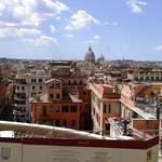 Kis tanácstalanság után átmegyünk a Terminire, eszünk valamit a Ciao nevű önkiszolgálóban, és elmetrózunk a Spanyol lépcsőhöz. Még az aluljáróból felmegyünk lifttel a Trinita dei Montira, jól tettük, a lépcső még nincs kész, bár valamikor augusztus elejére ígérték. Megpróbáltunk bemenni a templomba, na nem mintha egy percig is azt hittük volna hogy sikerül. A Pincio dombon járunk, megnézzük a Medici Villát ami a Francia Akadémiának ad otthont. Kényelmesen továbbsétálunk, jobbról pálmák és kertek, balról a város panorámája. A Popolo felett megállunk, elolvassuk mit ír a könyv, próbálunk bemenni a Santa Maria del Popolo templomba megnézni a két Caravaggiót, persze már zárva találjuk. A Via di Ripettán van a Museo dell' Ara pacis, a Béke oltára. A művet a római szenatus rendelte meg Augustus hazatérése valamint a Hispániával és Galliával megteremtett béke, tulajdonképpen a két terület leigázása alkalmából. A tizenhárom eurós belépődíj rablás, egy Ken Domon nevű japán fotós kiállítása van még a modern épületben. A Tiberisz felöli oldalon tiszta üveg az épület fala, így kívülről is megnézhető a carrarai márványból faragott oltár. Benézünk egy-két boltba a Corsón, majd a Galleria Alberto Sordi egyik kávézójában iszunk egy espressót, a fiúk söröznek, majd találomra felugrunk egy buszra, megkérdezem a sofőrt, hogy érinti-e a Kolosszeumot, így megspórolunk pár kilométert. A Basilica di San Clemente tavaly az orrunk előtt bezárt, most nyitva találjuk, 15-18 óra között van nyitva délután. Csak pár lépés innen a SS. Quattro Coronati Monostor és templom, ahol nem jutunk be a kerengőbe, hatkor mise kezdődik. Visszamegyünk a Colosseo metróhoz, és ismét a Popolón vagyunk Caravaggio ügyben. Mise van, nem engednek oda a képekhez, végül megbeszélem a sekrestyéssel, hogy mise után lesz 3 percünk zárásig, de ne menjünk ki a templomból, maradjunk a közelében. Végül még vagy tízen csatlakoznak hozzánk, előkerül egy egy eurós is megvilágítani a képeket. Hát ez nem volt könnyű, de megoldottuk. Egy elektromos kisbusszal a Veneziáig megyünk, ahol kedvenc 8-as villamosunk vár bennünket, este nyolcig érvényes a bérletünk, még bőven belefér a két megálló. A búcsúvacsorát a Carlo Mentában költjük el, pizzát rendelek, rég ettem ilyen jót. Veszek egy-két szuvenírt hazafelé, otthon még tétovázom kicsit, hogy kimenjek-e a folyópartra, de már túl fáradt vagyok, és reggel ötkor kelünk, gyorsan elszaladt ez a néhány nap.
