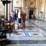 Átsétálunk a Ponte Sistón, a Via Pettinarin van egy szicíliai kávéház, szép régi berendezéssel, kedves eladókkal. A vitrinben finom sütik, cannolik minden ízben, az árak barátiak, a presszó kávé 90 cent, ha asztalnál fogyasztod akkor is. Az ajtón matricák jelzik a sok elismerést, különféle díjakat. A Giubbonarin betérünk egy-két üzletbe, végül megálljuk vásárlás nélkül. A Venezián buszra szállunk, ellenőrök állnak mellettünk egyenruhában, de senkitől nem kérik a jegyeket ( nekünk persze bérletünk van ) a későbbi megállóknál jókat mulatunk, többen meggondolják magukat a felszállók közül, mikor meglátják az ellenőröket. A Repubblicán szállunk le, Diocletianus termáihoz megyünk, a Santa Maria dei Angeli e dei Martiri templomot a valamikori frigidarium helyén, annak falait felhasználva építették, Michelangelo tervei szerint. A templomban Galilei ingája a legnépszerűbb a látogatók körében.