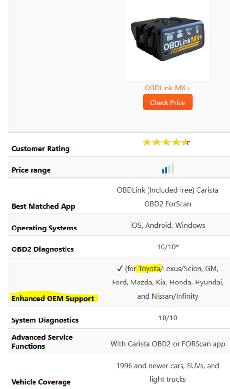 A OBDlink EX szintén tudja az OEM kódokat, viszont ez vezetékes, sima USB csatival, és ehhez (is) a FORScan-t ajánlják, ami ugye inkább ford specifikus, de szintén támogatja a toyota cuccait.