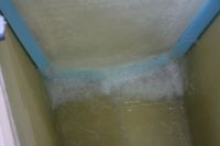 Maradék ez két réteg epoxi, kap még 3-4 réteg poliésztert egyre nagyobb átfedésben és akkor ez finom borda is lesz, nem csak válaszfal. Azért ez mégiscsak 12 személyes katamarán lesz.