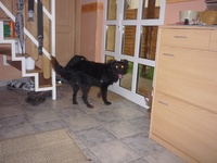 Van egy új talált kutyusunk, aki Gordon mellé fog kerülni, remélhetőleg társnak. Én találtam Csepelen, napok óta ázott az utcán, épp hogy elkerülte, hogy elüsse egy autó, úgy járkált a forgalmas úttesten, a hajam égnek állt tőle. Ma megmentődött, délután jól belakta az előszobát, már labdázott is.