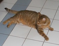 Mint korábban írtam, tegnap délelőtt őkelme elszökött. Mint kiderült, késő délután felszállt a Martonvásárra tartó vonatra és ott le is szállt. Nem tudom, mennyi időt töltött ott, de még tgenap este hasonló módon felszállt egy Bpestre tartó másik szerelvényre. Sajnos nincsenek pontos információim, de tény, hogy két rendőr szállította le a vonatról (gyanítom, már Pesten) és rendőrkocsival szállították az Illatos úti telepre. Az éjjelt karanténban töltötte, majd reggel az ügyeletes állatorvos megvizsgálta, és a chip alapján gyorsan beazonosították. Most már (megkötve ugyan) de békésen alszik itthon a megszokott hűsölő helyén.