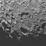 Hold részlet. A kép felsőrészén A Mare Serenitatis (Derültség Tengere) alatta a Mare Tranquillitatis (Nyugalom Tengere) , lefelé haladva a Theophilus kráter a Mare Nectaris (Méz Tengere) szélén látható, stb. ,