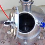 Főzés alatt persze felesleges lenne az üstmosó fejet a sisakba lógatni, így ilyenkor a szintén bilincses betekintőüveg kerül a 2"-os Tri-clamp csonkra: