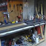 Én csak 30x30-as zártszelvényből tervezem a síneket. A hosszú sínek alá tennék deszkákat és ezek egyenesre gyalult élére csavaroznám a zártszelvényeket, így lenne tartásuk. A csavarok lazításával és aláékeléssel az esetleges későbbi vetemedéseket használat előtt is ki lehetne balanszírozni. Amikor meg nincs rájuk szükség, a műhelysarokba lehet támasztani vagy polcra rakni a két "vasalt deszkát", hogy ne legyenek útban.