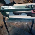Nekem is volt ilyen gépem, max. a collos deszkát vitte el, de azt is nagyon lassan. Pótlásokat és svartnit vágtam vele. A 3 kerék miatt csak nagyon vékony és keskeny lapokat lehet rá feltenni. Inkább úgy tekintenék rá, mint egy dekopírra amivel könnyű egyenest vágni. Az én példányom ette a lapot, hiába próbálgattam állítgatni. A kerekeken semmiféle bandázsolás nem volt.