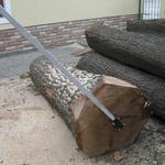 Legközelebb puszta szórakozásból, próbálj meg viking módra pallót csinálni. Tudod, amikor két végén beverik az éket, majd pikk-pakk gyorsan kettéesik a fa. Aztán megint, és megint. Kockázat nulla, ha nem sikerül, jó lesz az tüzifának is. :)